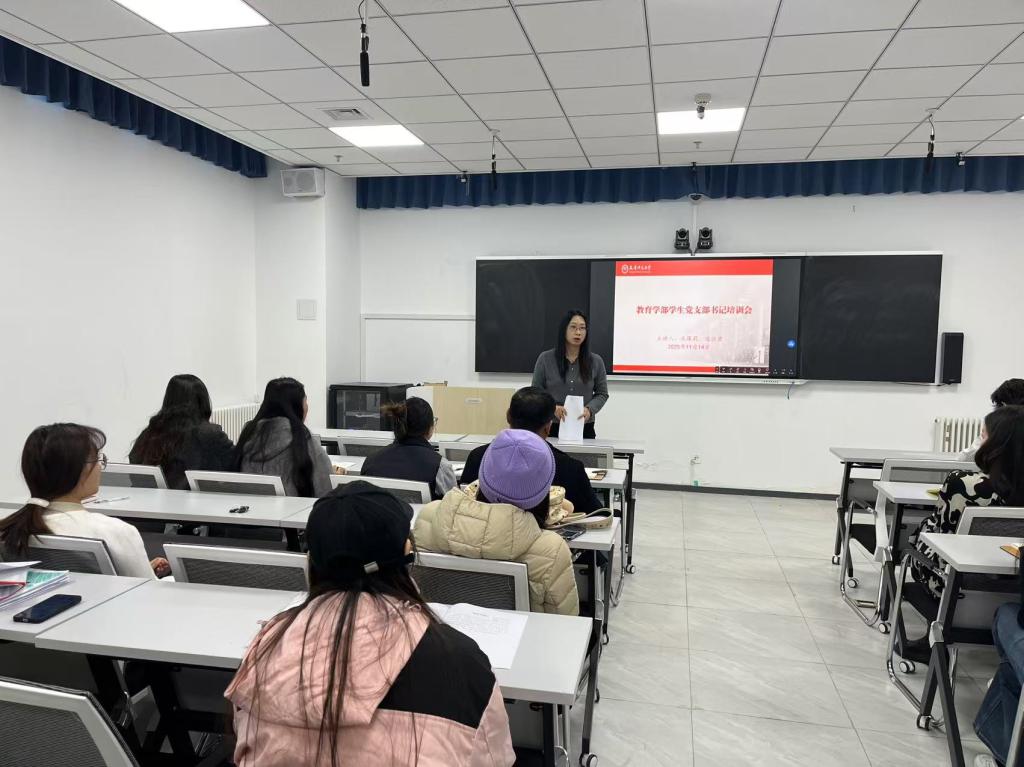 为深入贯彻落实新时代党的建设总要求,进一步提升党员发展工作的规范化、科学化水平,结合近期开展的我校2025年度党员档案互查工作,近日,教育学部党委专题组织召开学生党支部书记培训会。教育学部党委副书记吴文婧、学部专职组织员及23名学生党支部书记参加培训。
