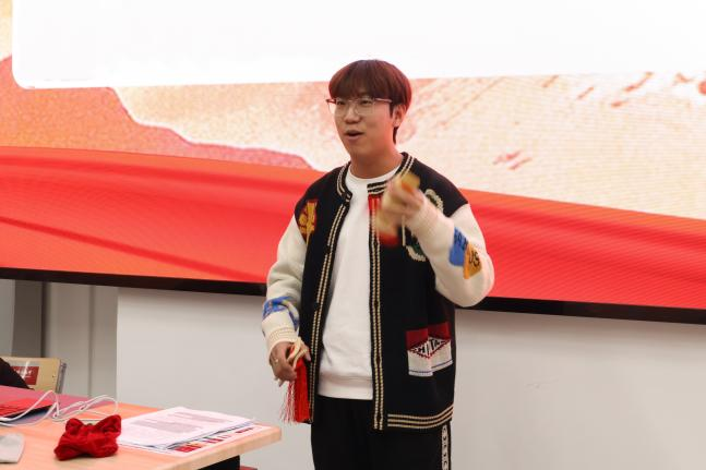“竹板这么一打,别的咱不夸,咱来讲讲沂蒙精神传天下。沂蒙山区好风光,革命历史绽光芒。军民团结一家亲,鱼水深情暖心房......”宣讲团成员王梓沣以同学们喜闻乐见的方式,将脍炙人口的“津味”快板与沂蒙精神巧妙结合,通过明快的节奏和朗朗上口的唱词,将沂蒙山区的自然风光、革命历史、军民之间的鱼水情谊及沂蒙精神在新时代的传承与发展融入快板之中,让宣讲更加接地气、使精神更加深入人心。