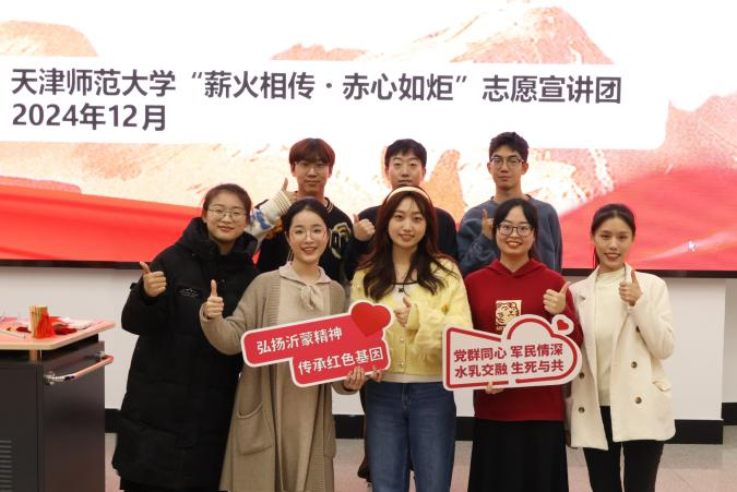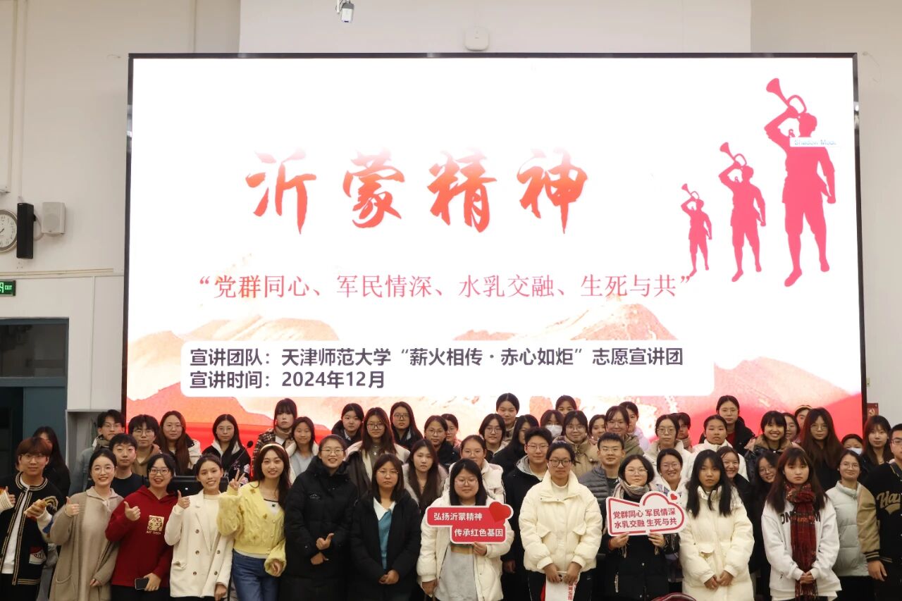 沂蒙精神是党和国家的宝贵精神财富,是中国共产党人精神谱系的重要组成部分。为进一步讲好沂蒙故事,弘扬沂蒙精神,传承红色基因,近日,天津师范大学“薪火相传•赤心如炬”志愿宣讲团在校内开展了一场别开生面的沂蒙精神主题宣讲活动。宣讲团采用“宣讲+文艺”的创新形式,让宣讲“走新”更“走心”。来自教育学部、文学院等16个学院的180余名同学参与活动。