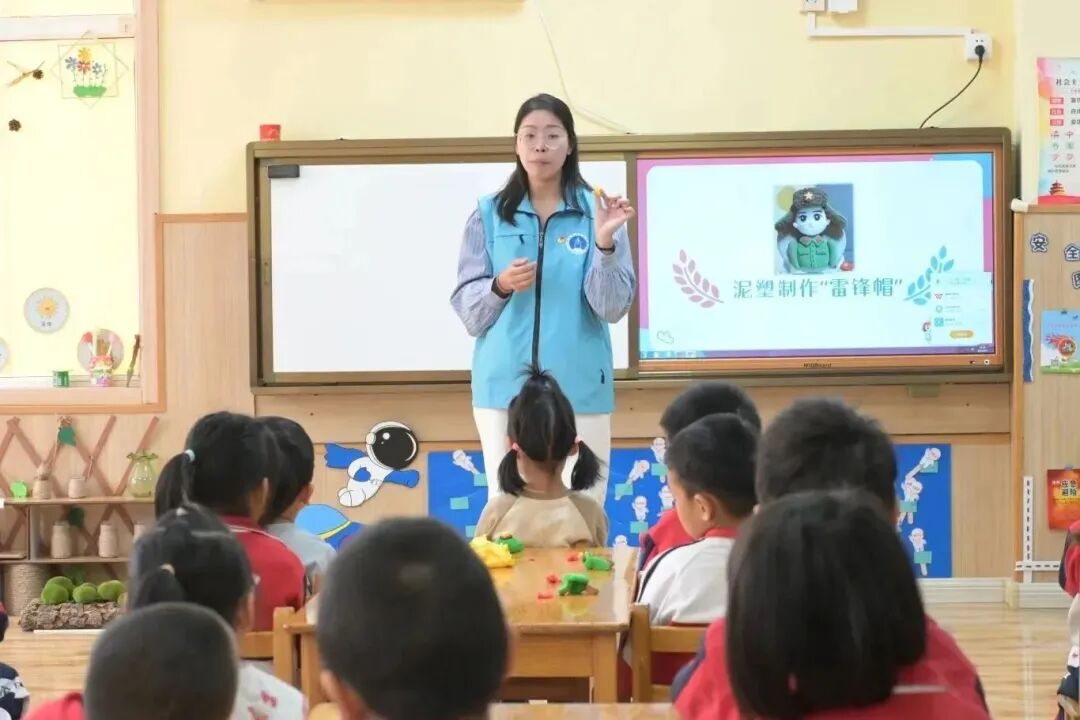 在宣讲人黄阳杰的带领下,孩子们用亲手制作的“雷锋帽”来表达对雷锋叔叔的敬意。在制作“雷锋帽”的过程中不少小朋友也遇到了一些困难,但是孩子们之间互相帮助,不放弃,共合作,互鼓励,很好地体现出团结友爱、助人为乐的雷锋精神。小朋友们用超轻黏土制作的一顶顶“雷锋帽”,不仅记录了真实情感,也凝结着对雷锋精神的感悟,潜移默化地指引着他们今后的努力方向。